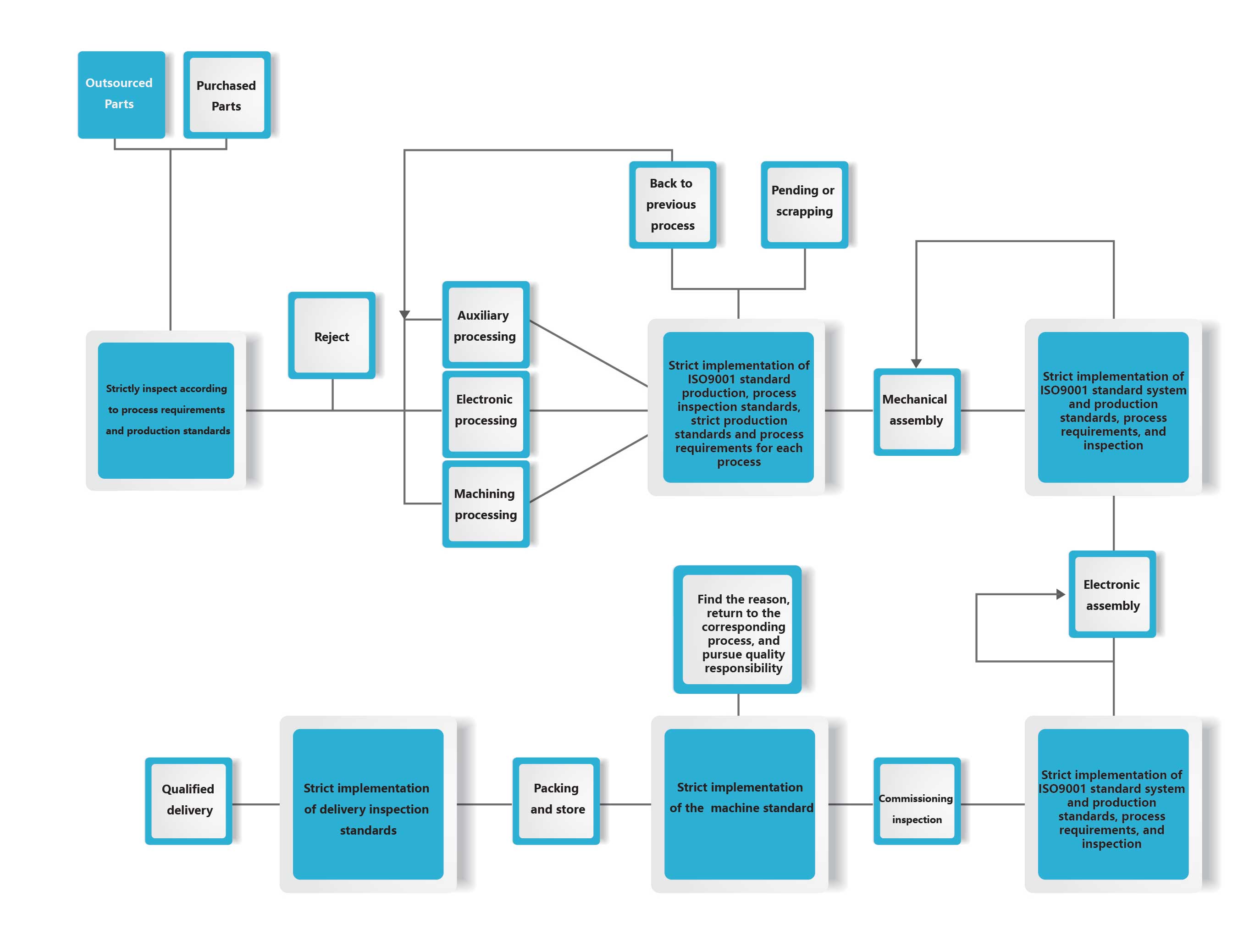 Refined production and management, continuously introducing the latest production technology and manufacturing equipment, adopting the 5S refined management mode, ensuring first-class processing and manufacturing levels, fully implementing the ISO9001 quality management system, and ensuring product quality