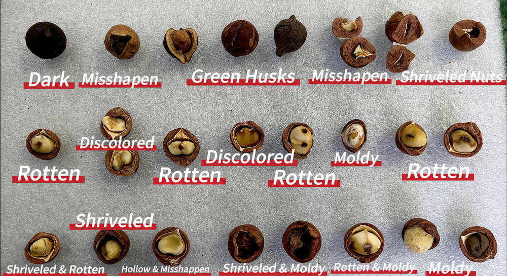 With cutting-edge multispectral detection technology, AMD's processing equipment ensures consistent food safety removing defects with superior detection capabilities on macadamia nuts.