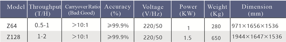 The AMD Z Series Mini Grain Color Sorter is a sorter designed to meet the needs of households. Its small footprint and ease of operation make it a useful tool for improving grain quality and reducing waste in the agricultural and food processing industries.
