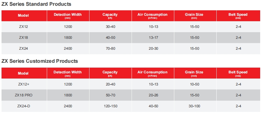 The AMD® ZX series is an intelligent sorting machine specifically developed for mineral sorting. It can accurately identify differences in mineral grades, achieve sorting of non-ferrous metals (copper ore, molybdenum ore, lead and zinc, etc.), ferrous metals (iron ore, manganese ore, etc.), and non-metallic ores (phosphorus, fluorite, quartz, feldspar, etc.), improve concentrate grade, increase rate of recovery, reduce processing costs, and enhance tailings utilization value. More mineral sorting machine for your needs.