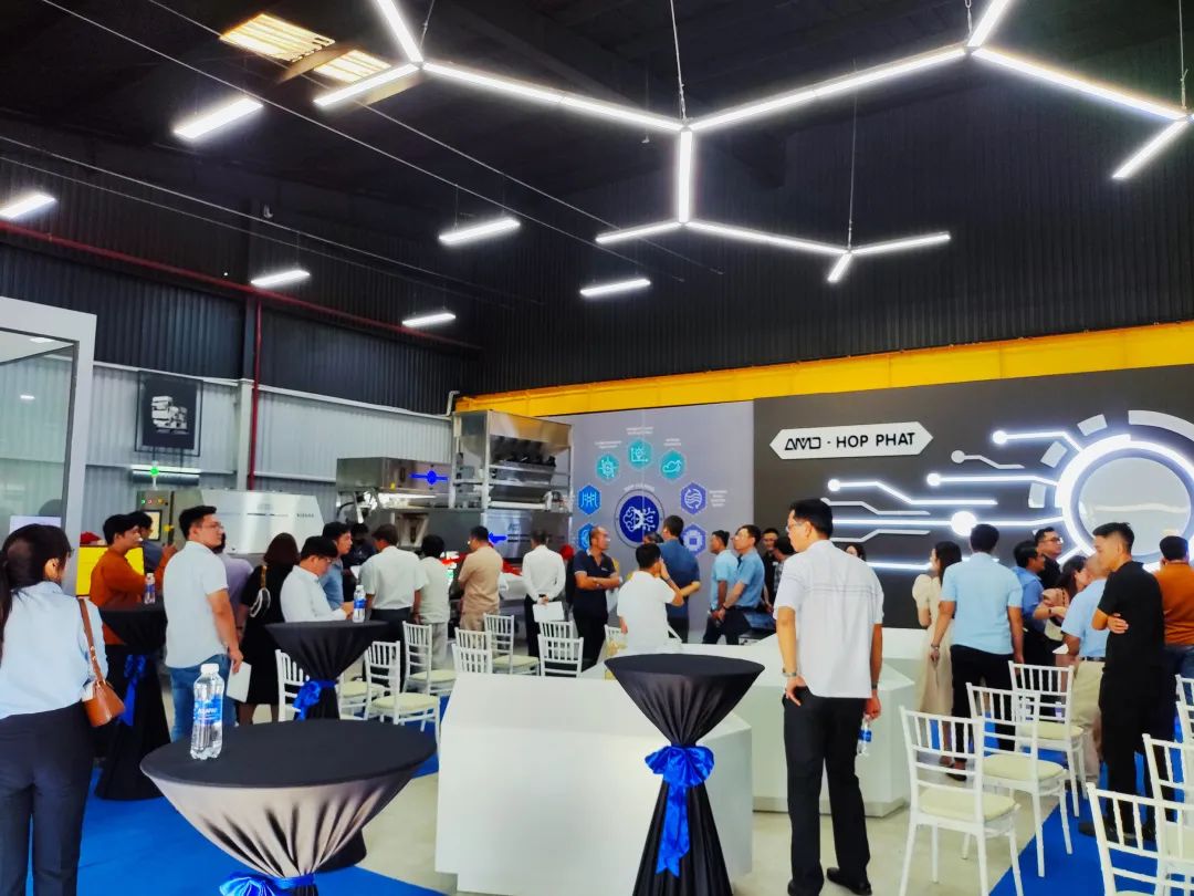 12th December 2023 - The grand opening ceremony of AMD & HOP PHAT's new showroom in Vietnam was successfully held in the presence of over 100 guests, including the Vice President of the Vietnam Cashew Association, representatives from the cashew processing industry and delegates from Vietnam's largest ore/plastic recycling companies. Mr. Liu Baoying, General Manager of AMD COLOR SORTER, attended the event, delivered a warm speech and extended his sincere congratulations on this important occasion.
